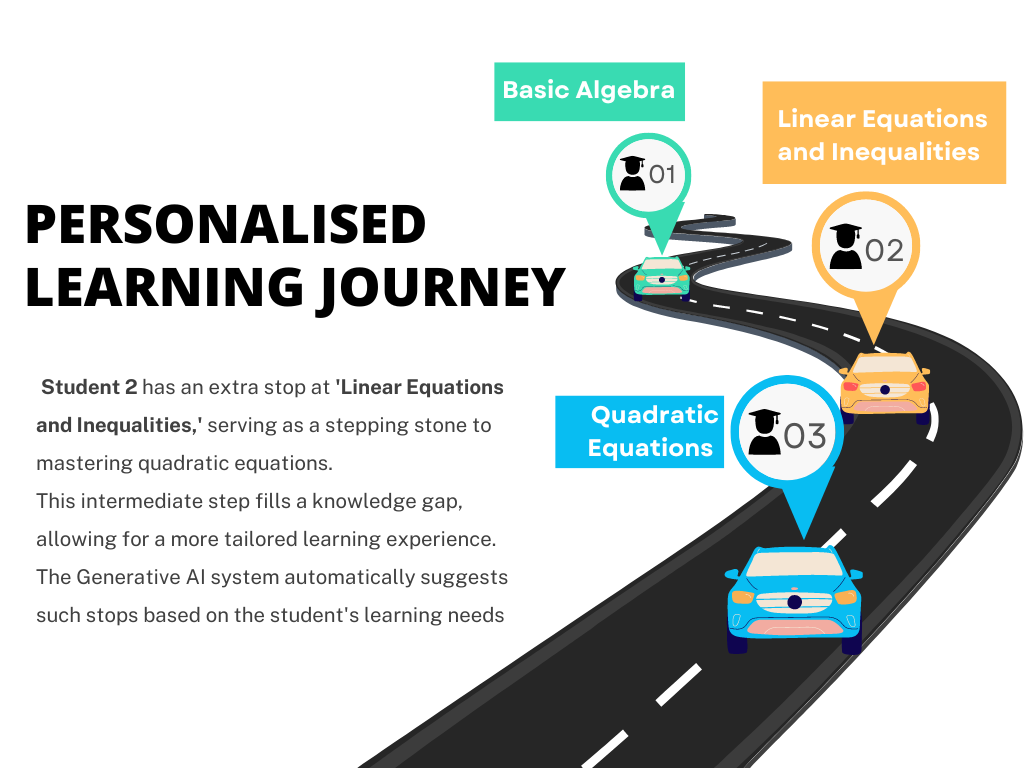 Idea-3 focuses on using Generative AI to streamline educational content creation and elevate teacher support. This includes automating video creation and grading, providing 1:1 tutoring opportunities, and employing data analytics to enhance personalized teaching and student performance evaluation