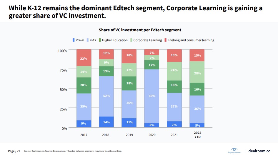 Another report shows that Corporate Learning and Employee Upskilling is an emerging category among developing countries. This can also be viewed as a growth opportunity if the platform focuses on coding and programming skills.